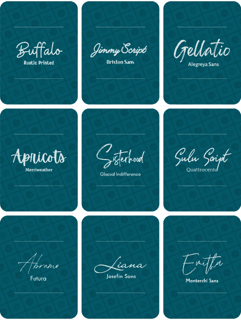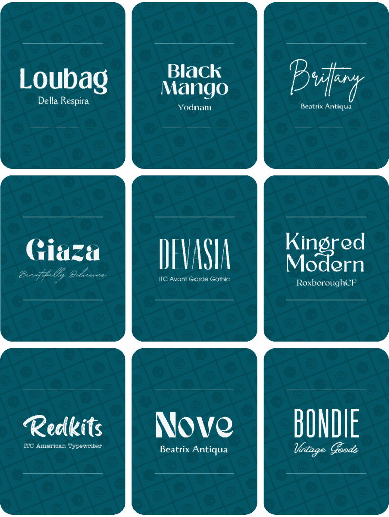 Below are some of the best cursive Canva font combinations. We’ve included the font pairings below and around another 100 of these font combinations in our full document – so make sure to get it (for free) by clicking here and filling in the form: