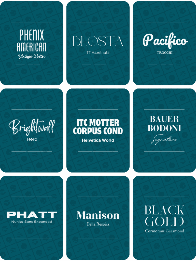 Below are some of the best Canva font combinations for logo designs. We’ve included the font pairings below and around another 100 of these font combinations in our full document – so make sure to get it (for free) by clicking here and filling in the form: