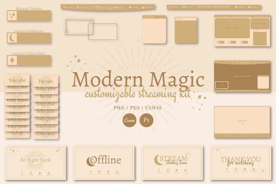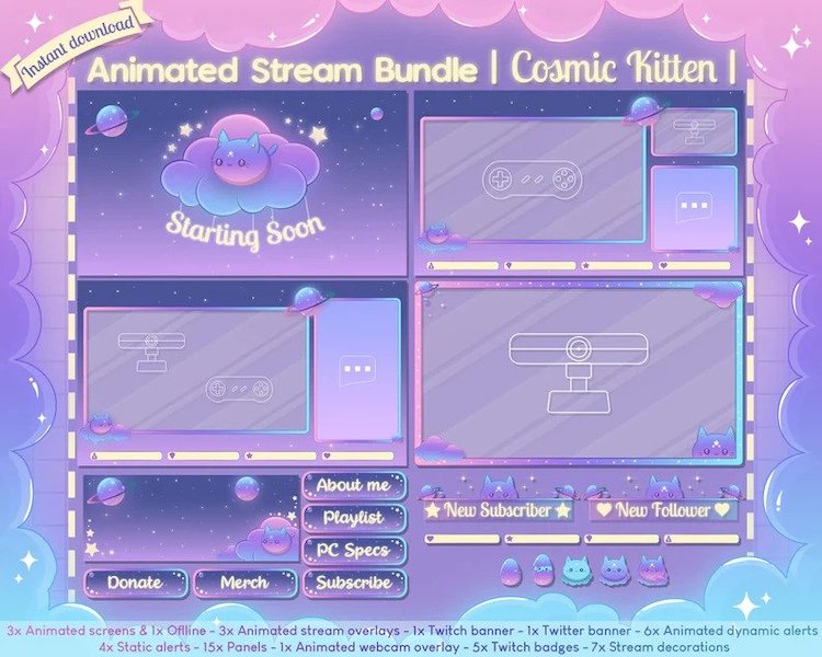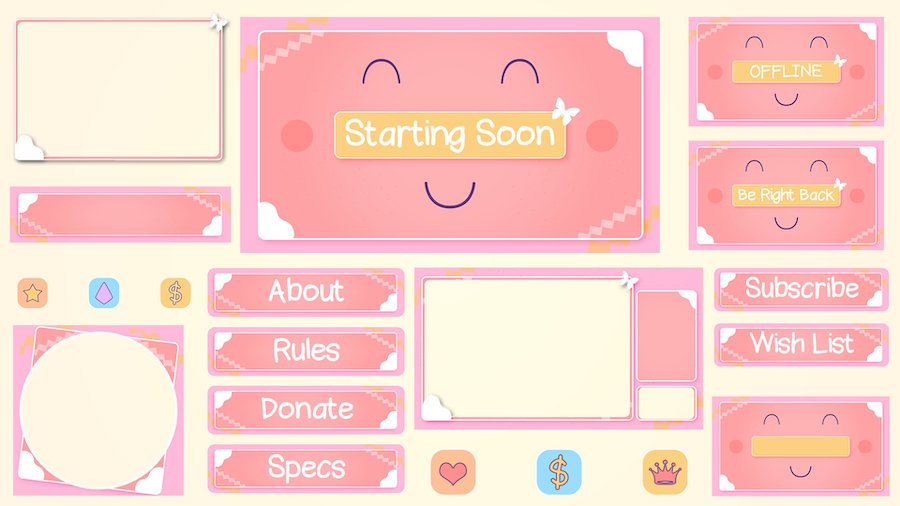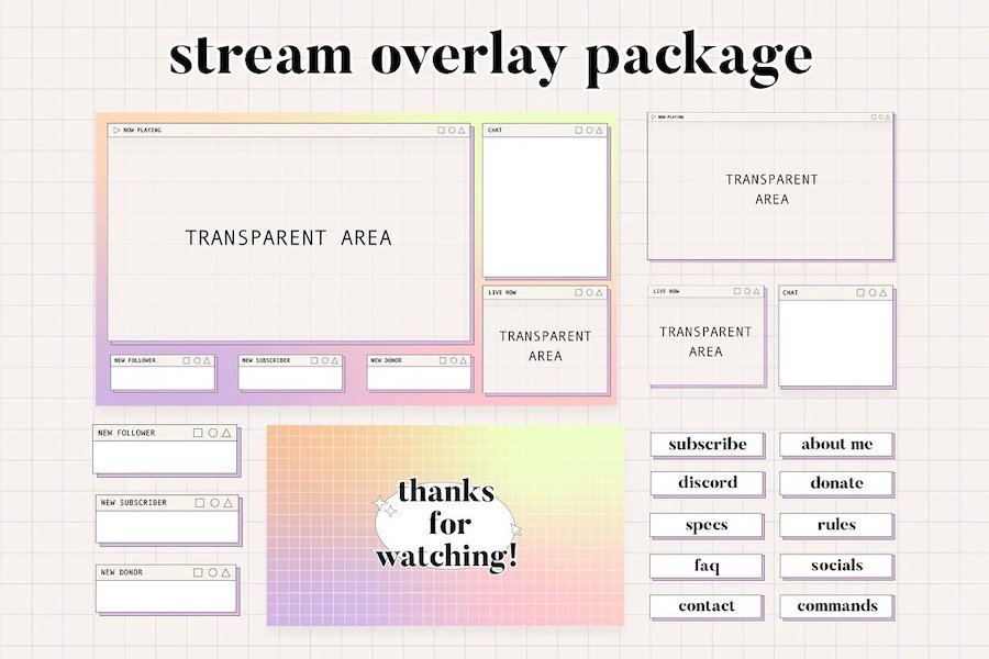 Some of the templates are from online overlay makers so you don’t need to download any software to customize them, whilst others require some design software to edit.