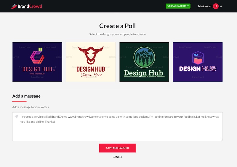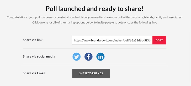 If you’re looking for feedback on your logo designs, BrandCrowd gives the opportunity to create a ‘poll’.