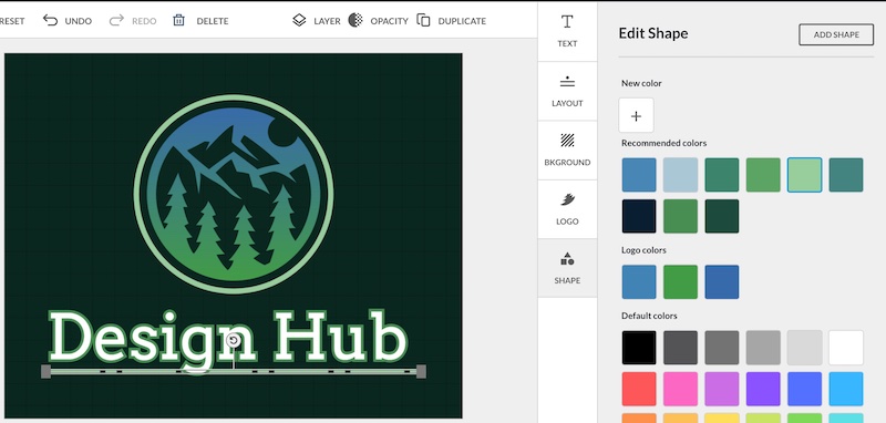 Customizing the shapes is simple. You can modify the size, position, color, rotation, opacity, duplicate, and add multiple shapes to your design: