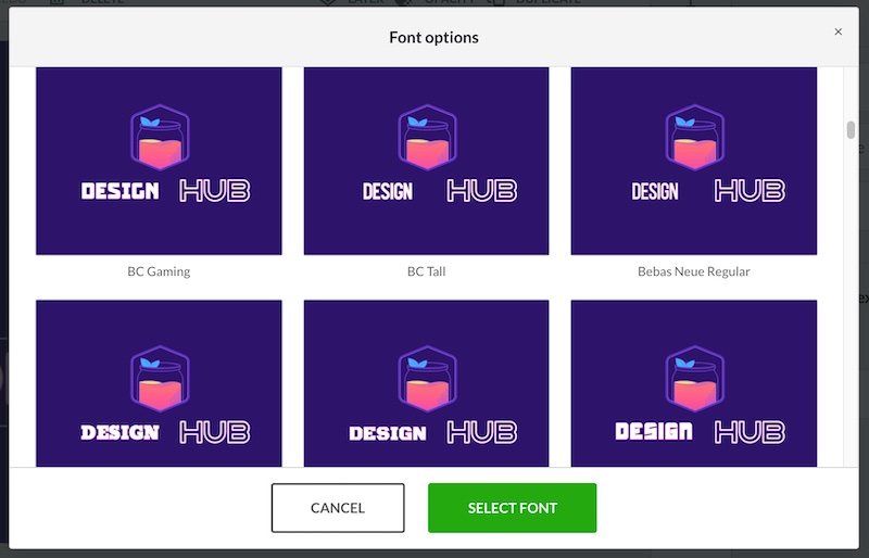 When you click on the ‘See Options’ button next to the font you’re currently using for your logo, a popup appears with a preview of alternative fonts: