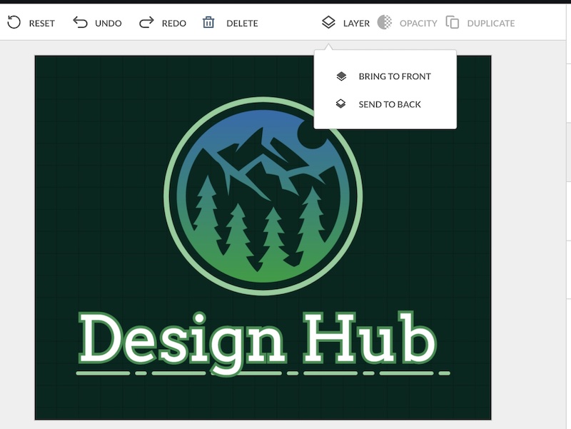 BrandCrowd uses a layering system, so if you have several shapes or text elements on the canvas you can select one and change what order it sits in the layers by clicking the layers button above the canvas and bringing it to the front or sending it to the back: