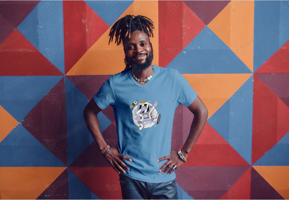 Here’s another example of a t-shirt mockup where we’ve placed a dancing astronaut design: