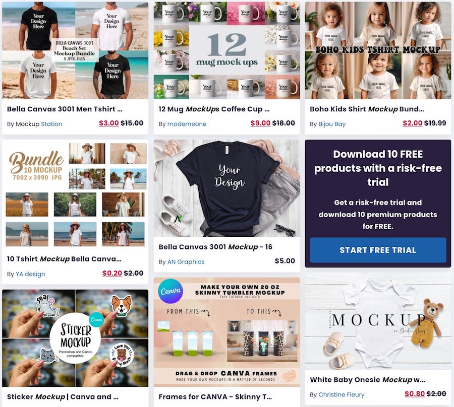 You can find plenty of incredible mockup templates on Etsy, many of which have been created with print on demand store owners in mind. This includes individual templates as well as mockup packs, most of which are reasonably priced.