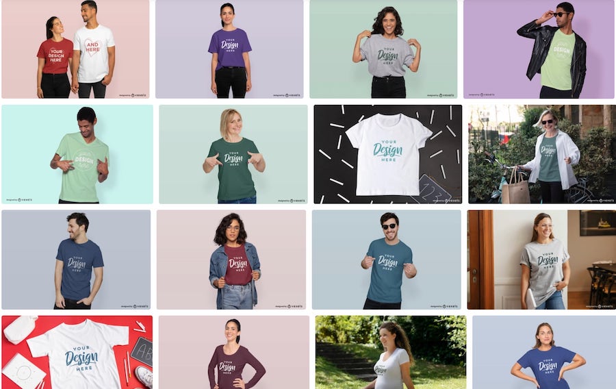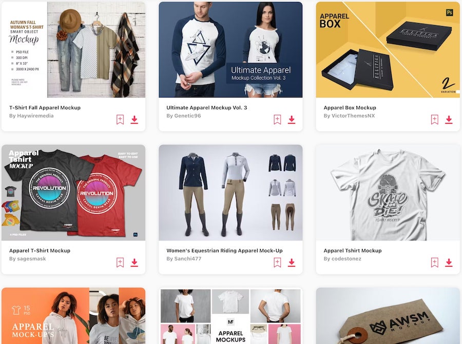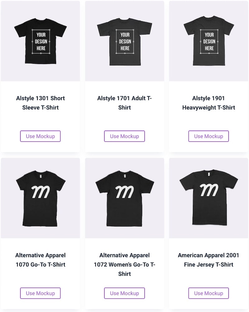 They have mockups for a large range of products as well as many different print on demand apparel brands so it’s well worth taking a look at their library.