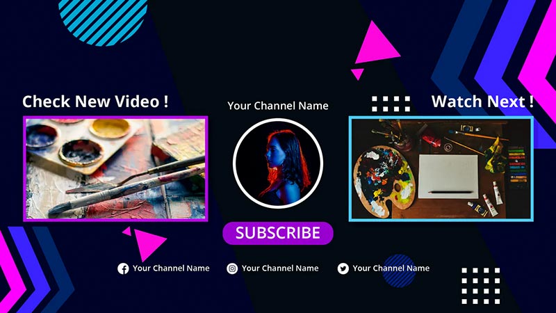 Download this PREMIUM YouTube outro PSD template on Fivver now. Customize it in photoshop.