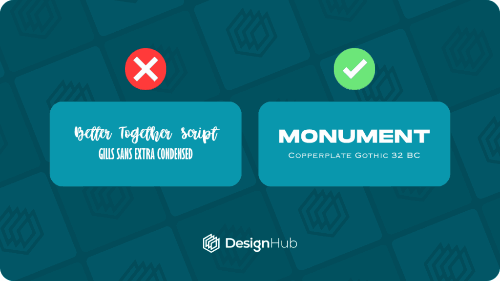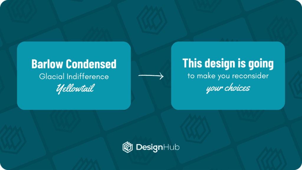 Avoid pairing fonts that are too similar. Doing so can make the designs bland, confusing, and make it challenging to create an obvious visual hierarchy.