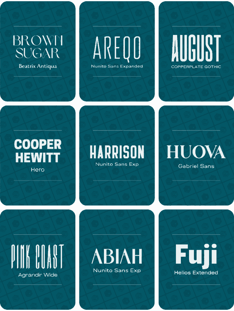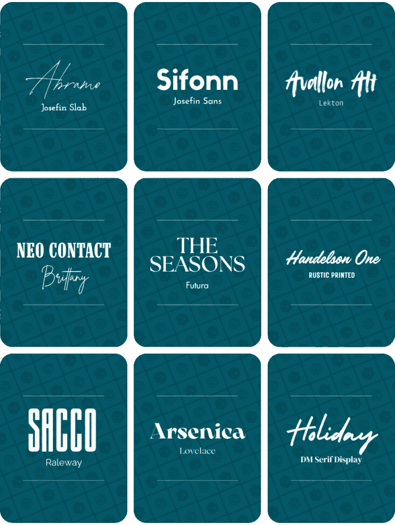 Below are some of the best Canva font combinations for logo designs. We’ve included the font pairings below and around another 100 of these font combinations in our full document – so make sure to get it (for free) by clicking here and filling in the form: