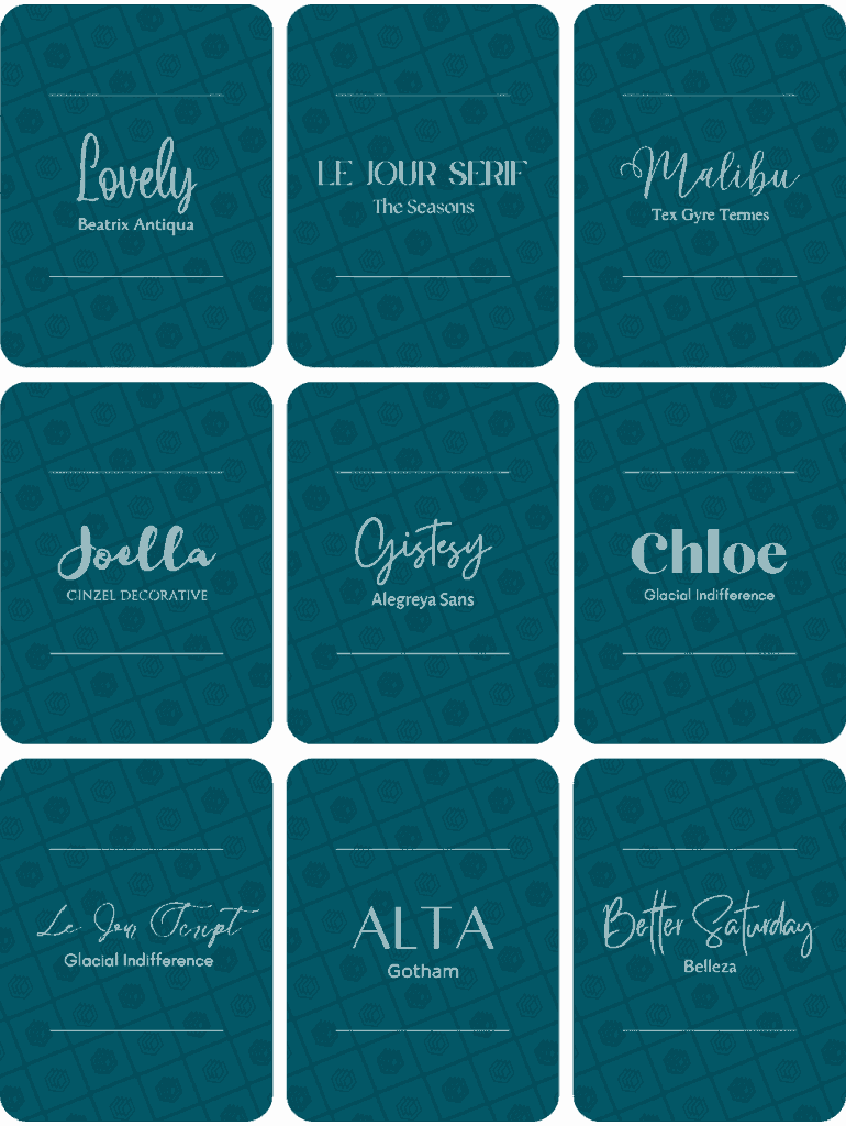 The file contains several Canva templates with font combinations in a variety of styles and themes including modern, vintage, wedding, free, and so much more: