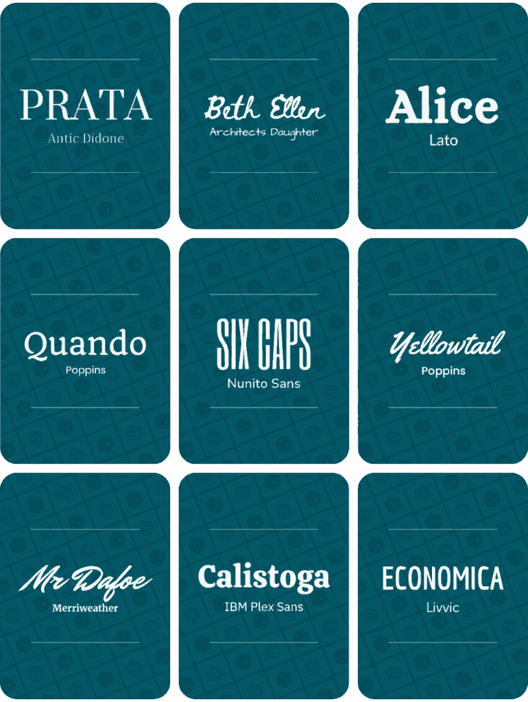 We’ve included the font pairings below and around another 100 of these font combinations in our full document – so make sure to get it (for free) by clicking here and filling in the form: