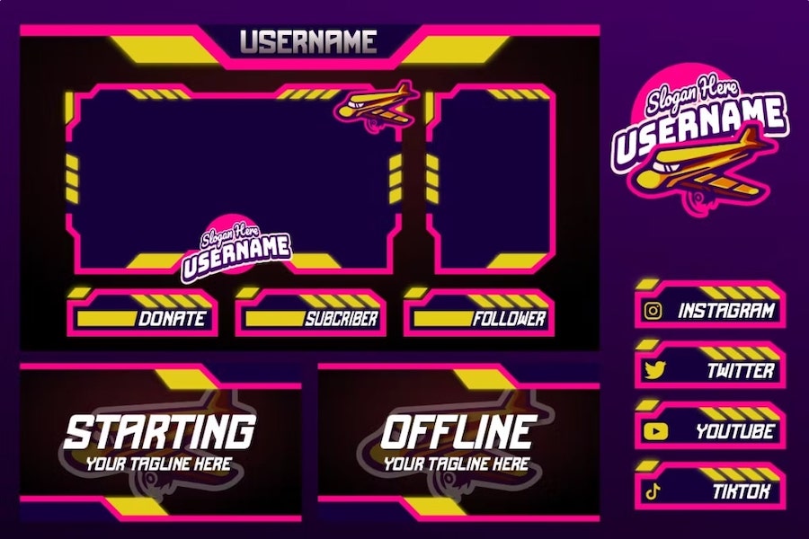 Some of the templates are from online overlay makers so you don’t need to download any software to customize them, whilst others require some design software to edit.