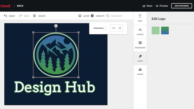 Customizing the colors of the design elements (graphics and text) is also super easy with BrandCrowd.