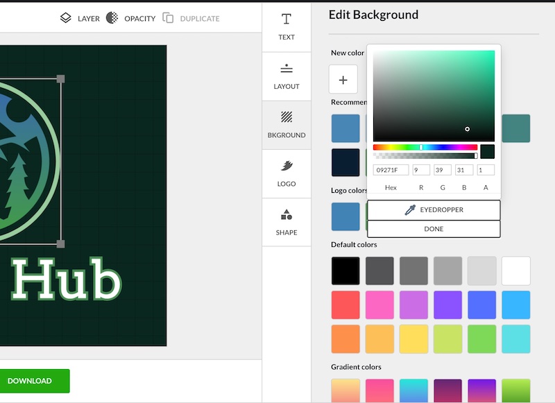 Other customizations that you can make to your logo design include being able to change the background color – solid color or gradient (you also get a transparent version of the logo design when you finalize your order):