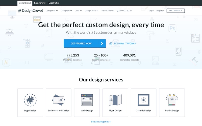 BrandCrowd also has a sister site called DesignCrowd, where you can create a project and multiple designers will create designs for it, and all you have to do is choose your favorite design.
