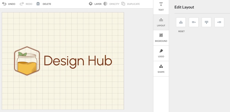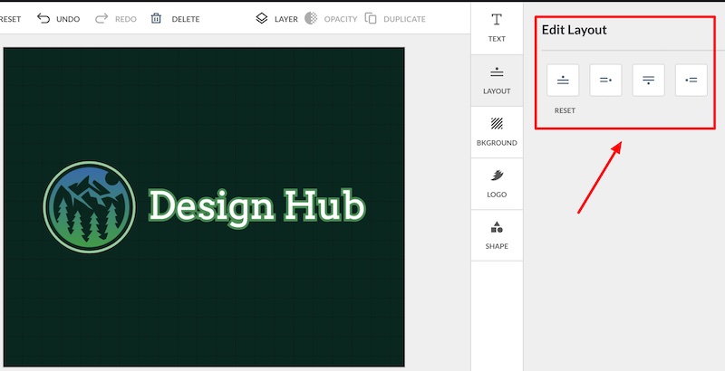 You can also easily adjust the layout of your logo design by utilizing one of the four layout presets in the Layout tab: