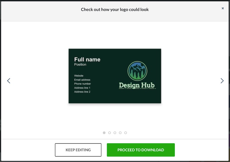 You can only download your logo once though, and you can’t go back and do further edits to the design once you’ve downloaded your design: