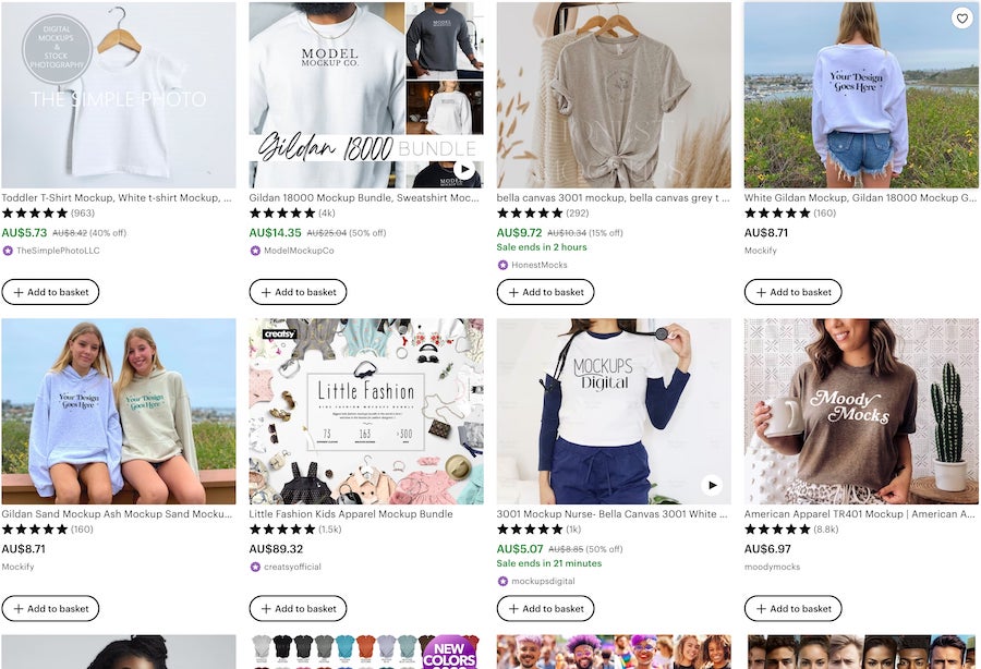 You can find plenty of incredible mockup templates on Etsy, many of which have been created with print on demand store owners in mind. This includes individual templates as well as mockup packs, most of which are reasonably priced.