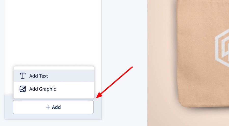 You can add additional design elements such as text fields and extra graphics by clicking the ‘+ Add’ button on the bottom left of the editor area: