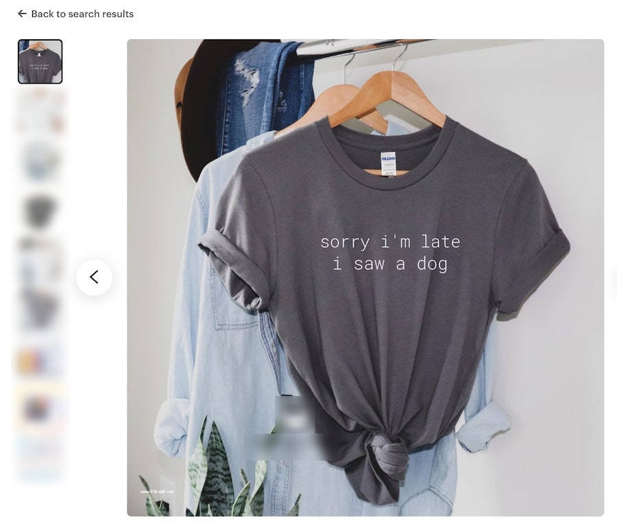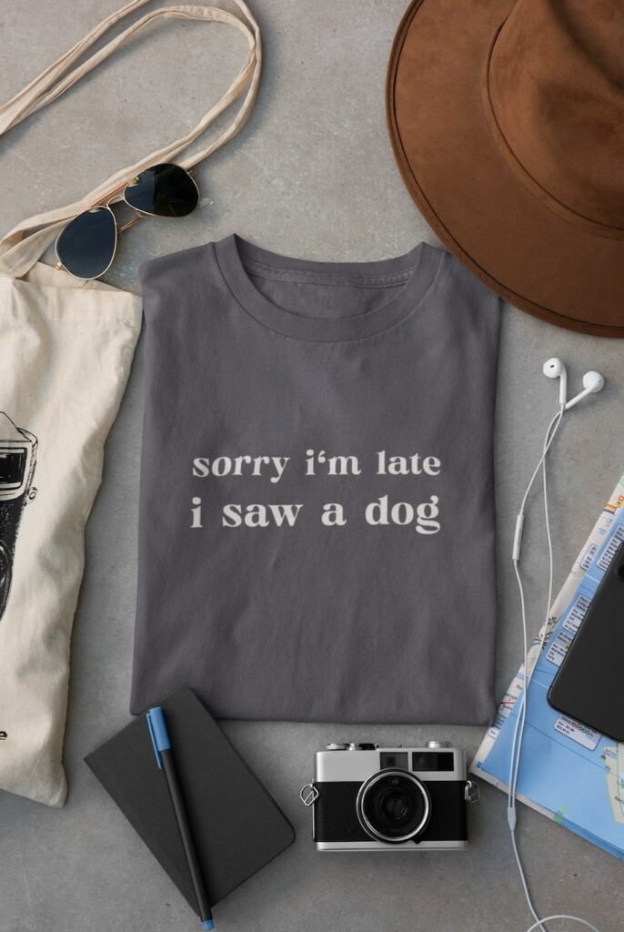You can see a mockup image from an Etsy store below which is okay but the text design doesn’t sit quite right on the t-shirt, so we created a couple of mockups on Placeit that you can see below that we think could do a better job of promoting the product: