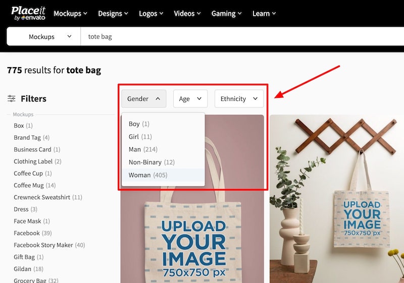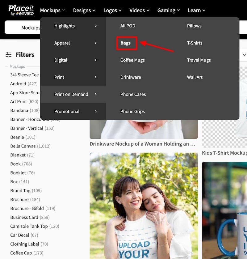 Navigate to the mockup area on Placeit (this link takes you there) and use the filters on the left side to select the relevant mockup category.