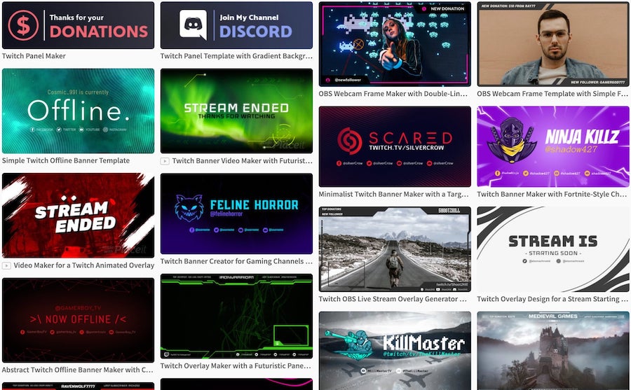 If you’re a streamer you can can create Twitch designs with Placeit including overlays, panels, banners, webcam frames, emotes, and much more.