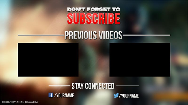 Download this PREMIUM YouTube outro PSD template on Fivver now. Customize it in photoshop.