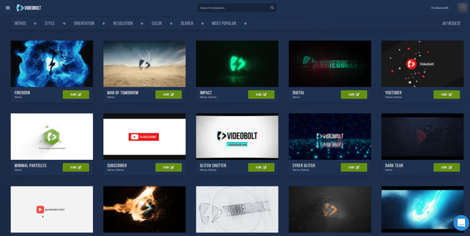 Although, not quite as much as the two tools mentioned on this list already, Video Bolt still has a large library of high-quality intro templates. So, whatever your niche focus is there is bound to be a batch of templates that are a good fit.