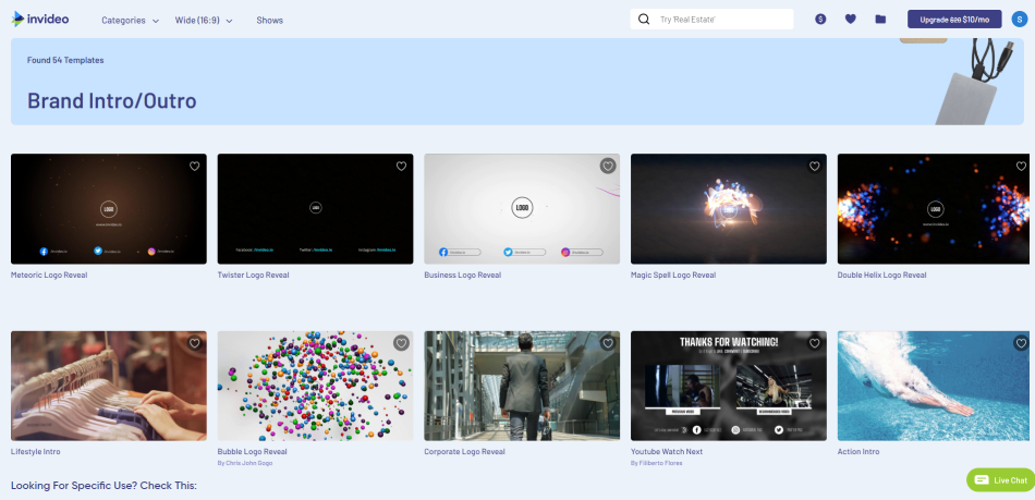 WoFox’s intro template library isn’t as large as a few of the other tools on this list but it is, for the most part, full of really good quality templates. Most of the templates are quite similar though, so you won’t find too much variety here.