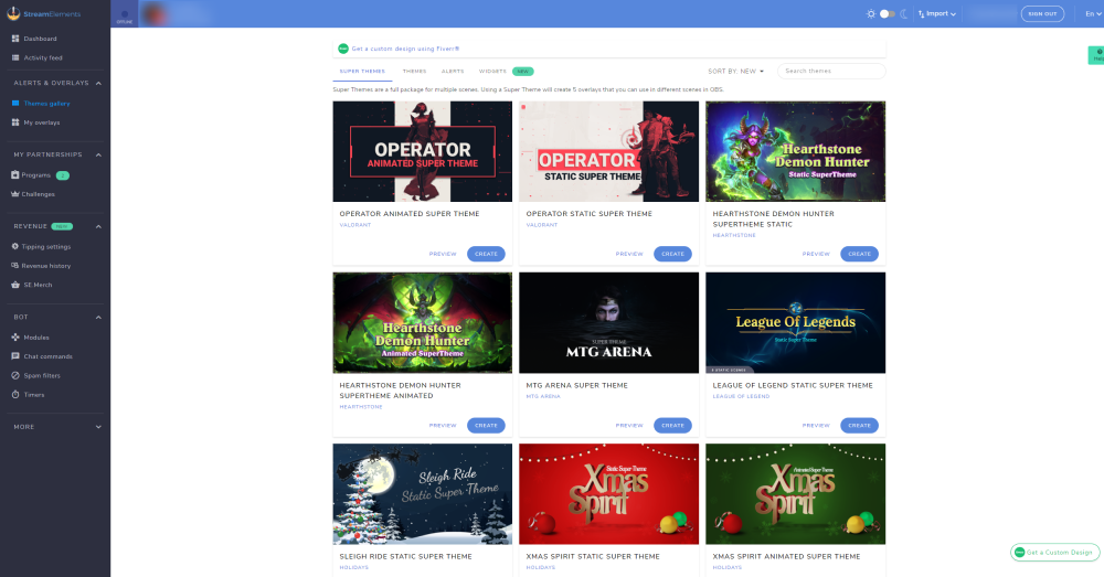 StreamElements is one of the best platforms out there for streamers. It’s a web-based tool that allows streamers to add custom widgets to their streams such as alerts, chatboxes, sounds, and a whole lot more! They also happen to have a large library of overlay templates you can customize and use on your streams.